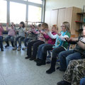 Mit musikalischer Begleitung gelingt das Singen noch besser . Die Kinder waren sehr konzentriert, damit die Aufnahmen auch gut gelangen.